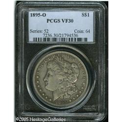 <B>1895-O<img border='0' src='http://www.heritagecoins.com/images/star.gif' width=10 height=10>$1 VF30 PCGS.</B></I> Evenly worn and suitably detailed, for the assigned grade, with attractive golden iridescence near the borders, and no distracting marks on either side. Lot:10458