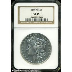 <B>1895-O<img border='0' src='http://www.heritagecoins.com/images/star.gif' width=10 height=10>$1 VF35 NGC.</B></I> A challenging New Orleans date with silver-gray surfaces. A few light contact marks are scattered about. Lot:10460