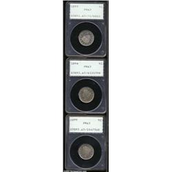 <TABLE cellSpacing=0 cellPadding=0 width="100%" bgColor=#000000 border=0><TBODY><TR><TD width="100%"><TABLE cellSpacing=1 cellPadding=3 width="100%" border=0><TBODY><TR><TD width="100%" bgColor=#79735c><FONT face=arial color=#ffffff size=3><B>Description</B> </FONT></TD></TR><TR><TD width="100%" bgColor=#ffffff><FONT face=arial size=2><B>1893 5C PR63 PCGS,</B></I> lovely pastel highlights with a multitude of obverse flyspecks; <B>1894 PR63 PCGS,</B></I> glossy monochromatic surfaces with a small lintmark on the cheek; and an <B>1895 PR63 PCGS,</B></I> tiny carbon flecks are mixed with milky patina. All three reside in first generation holders. (3 coins) </FONT></TD></TR></TBODY></TABLE></TD></TR></TBODY></TABLE><BR><A name=PricesRealized></A><TABLE cellSpacing=0 cellPadding=0 width="100%" bgColor=#000000 border=0><TBODY><TR><TD width="100%"><TABLE cellSpacing=1 cellPadding=3 width="100%" border=0><TBODY><TR><TD width="100%" bgColor=#79735c><A name=PR><FONT face=arial color=#ffffff size=3><B>Previous Prices from Heritage Auctions</B> </FONT></A></TD></TR><TR><TD bgColor=#f6f6ed><TABLE cellSpacing=0 cellPadding=0 width="100%" border=1><TBODY><TR><TD align=middle width="33%"><B>Date</B></TD><TD align=middle width="33%"><B>Service</B></TD><TD align=middle width="33%"><B>Price</B></TD></TR><TR bgColor=whitesmoke><TD width="33%"><B>06/10/2002</B></TD><TD width="33%">PCGS</TD><TD width="33%">$143.75</TD></TR><TR bgColor=whitesmoke><TD width="33%"><B>10/23/2001</B></TD><TD width="33%">NGC</TD><TD width="33%">$135.00</TD></TR></TBODY></TABLE></TD></TR><TR><TD bgColor=#ffffff><FONT face=arial size=1 ?>PLEASE NOTE: All prices realized reflect the final hammer price PLUS the buyer's premium in auctions that charge a buyer's premium. Each item has a notation at the top of the listing indicating whether that lot included a buyer's premium. Example: A item that sells with a final hammer price of $100 and a 20% buyer's premium will display with a price realized of $120. All information listed is intended to be as accurate as possible, but errors are possible. Please use this guide carefully and inform us of any inaccuracies. </FONT></TD></TR></TBODY></TABLE></TD></TR></TBODY></TABLE><BR><TABLE cellSpacing=0 cellPadding=0 width="100%" bgColor=#000000 border=0><TBODY><TR><TD width="100%"><TABLE cellSpacing=1 cellPadding=3 width="100%" border=0><TBODY><TR><TD width="100%" bgColor=#79735c colSpan=6><FONT face=arial color=#ffffff size=3><B>Price Guide*</B> </FONT></TD></TR><TR bgColor=#f6f6ed><TD align=middle><B>Grade</B> </TD><TD align=middle><B>Coin World<BR>(Trends)</B> </TD><TD align=middle><B>Numismedia<BR>Retail</B> </TD><TD align=middle><B>Numismedia<BR>Wholesale</B> </TD><TD align=middle><B>Coin<BR>Universe</B> </TD><TD align=middle><B>Heritage<BR>Value Index</B> </TD></TR><TR><TD colSpan=6>No Pricing Data Available</TD></TR><TR bgColor=#ffffff><TD colSpan=6><FONT size=1>*All information listed is intended to be as accurate as possible, but errors are possible. No item may be returned or refused based on this information which is provided as a service to our customers. You should contact each pricing source directly to determine the accuracy of this information. </FONT></TD></TR></TBODY></TABLE></TD></TR></TBODY></TABLE><BR><TABLE cellSpacing=0 cellPadding=0 width="100%" bgColor=#000000 border=0><TBODY><TR><TD width="100%"><TABLE cellSpacing=1 cellPadding=3 width="100%" border=0><TBODY><TR><TD width="100%" bgColor=#79735c><FONT face=arial color=#ffffff size=3><B>Population Guide</B> </FONT></TD></TR><TR bgColor=#ffffff><TD align=middle><!-- Begin Output of Population Grid--><TABLE cellSpacing=0 cellPadding=0 width="100%" border=0><TBODY><TR><TD vAlign=center><TABLE cellSpacing=0 width="100%" border=1 cellsadding="3"><TBODY><TR><TD vAlign=center><TABLE cellSpacing=0 cellPadding=3 width="100%" border=1><TBODY><TR><TD vAlign=center align=middle bgColor=#f0f1e8 colSpan=2 <CENTER><FONT face=Arial size=2><B>PCGS Pop </B></FONT><CENTER></CENTER></TD><TD vAlign=center align=middle bgColor=#f0f1e8 colSpan=2><CENTER><FONT face=Arial size=2><B>NGC Pop</B></CENTER></FONT></TD></TR><TR><TD vAlign=center><FONT face=Arial size=2>(63)</FONT> </TD><TD vAlign=center align=right><FONT face=Arial size=2>84</FONT> </TD><TD vAlign=center><FONT face=Arial size=2>(63)</FONT> </TD><TD vAlign=center align=right><FONT face=Arial size=2>30</FONT> </TD></TR><TR><TD vAlign=center><FONT face=Arial size=2>(>63)</FONT> </TD><TD vAlign=center align=right><FONT face=Arial size=2>287</FONT> </TD><TD vAlign=center><FONT face=Arial size=2>(>63)</FONT> </TD><TD vAlign=center align=right><FONT face=Arial size=2>238</FONT> </TD></TR></TBODY></TABLE></TD></TR></TBODY></TABLE></TD></TR></TBODY></TABLE><!-- End Output of Population Grid--> 3 coins Important notice: Heritage usually auctions material at the rate of 200-250 lots per hour. On some occasions eBay Live bid software or the Internet may not be able to keep up with the pace of the auction. We recommend placing a realistic absentee bid now as insurance to avoid disappointment. Occasionally the auctioneer may eliminate or reject an eBay Live bid, and the auctioneer may also reopen a lot after the close of the eBay live bidding (usually because we missed an audience bid), and may reject your bid even if it shows you as the winning bidder. By bidding via eBay Live, you agree that Heritage may award the lot to another bidder at its sole discretion under the circumstances described above or any other reasonable circumstances. Also please note that all Heritage lots purchased through eBay Live carry a 20% Buyer's Premium. Please make sure you read the Terms and Conditions before you bid.</TD></TR></TBODY></TABLE></TD></TR></TBODY></TABLE>