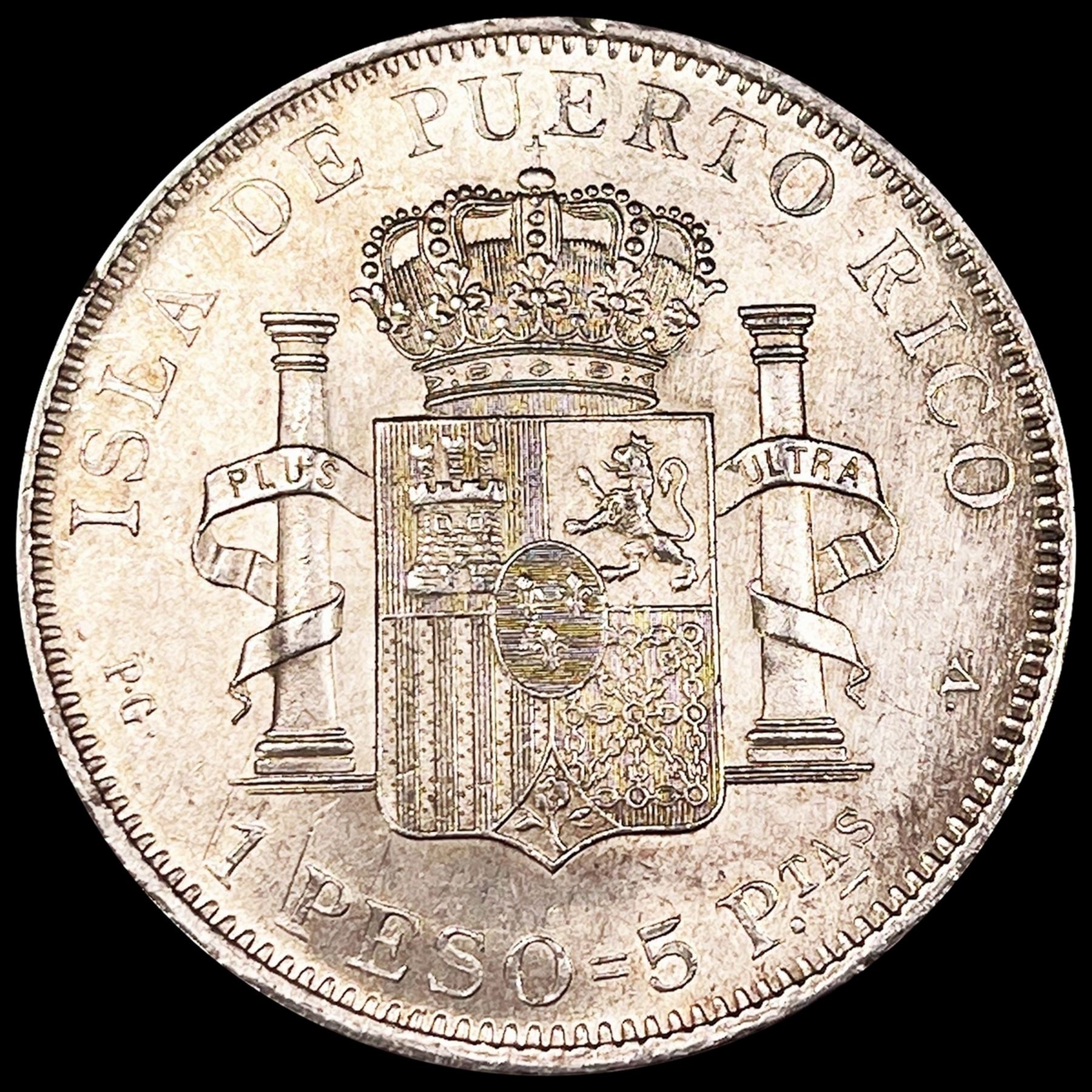1895 Puerto Rico Silver 1 Peso UNCIRCULATED