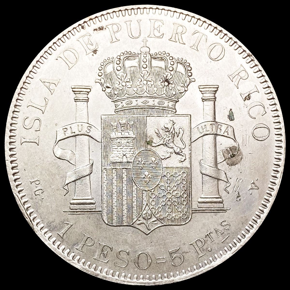 1895 Puerto Rico Silver 1 Peso UNCIRCULATED