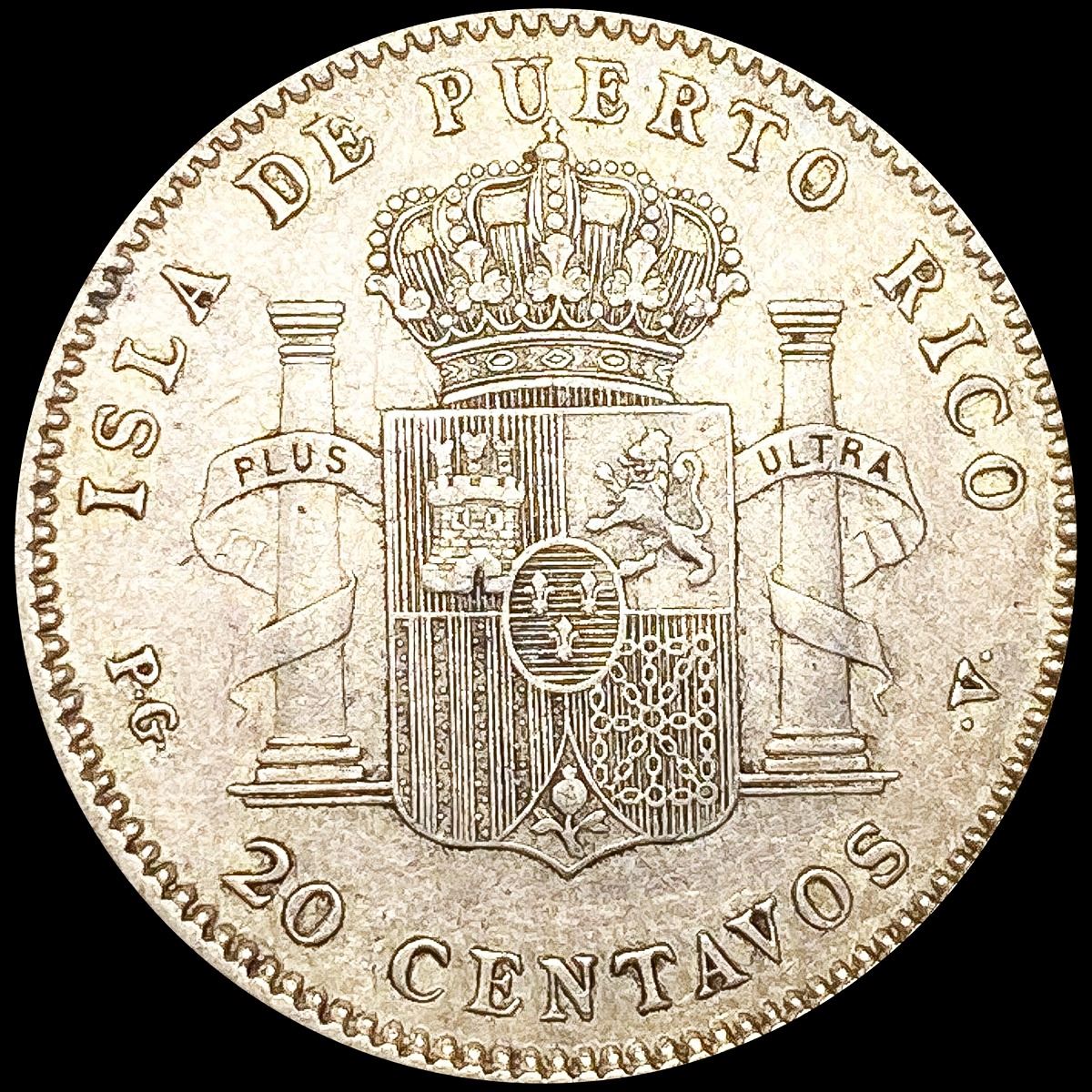 1895 Puerto Rico Silver 20 Centa UNCIRCULATED