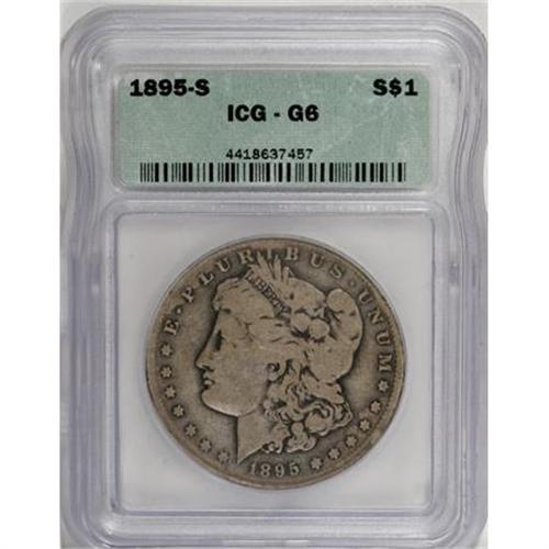 <B>1895-S $1 G6 ICG.</B></I> NGC Census: (16/1108). PCGS Population (25/1798). Mintage: 400,000. Numismedia Wsl. Price for NGC/PCGS coin in G6 : $279. (#7238)<BR><BR><B>Coin Engraver:</B> George T. Morgan<BR><BR><b>Shipping:</b> Coins & Currency (<a target="_blank" href="http://www.heritageauctions.com/common/shipping.php">view shipping information</a>)