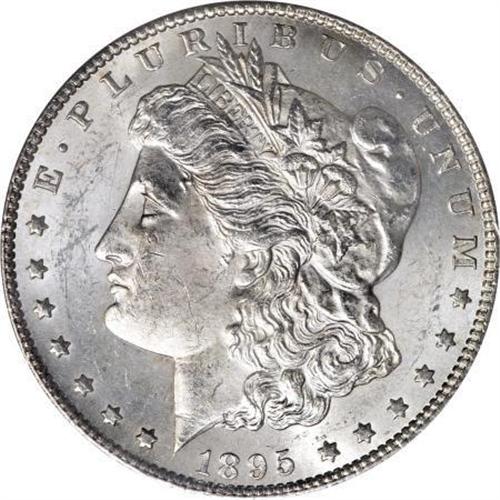 <B>1895-S $1 MS62 PCGS.</B></I> This low mintage silver dollar provides unbroken luster and a precise strike. The reverse is well preserved, and the obverse is pleasing despite a thin mark on the lower cheek. The key to a date set of Morgan dollars. Mintages in 1895 were minimal because the Sherman Act was repealed. Certified in a green label holder.<BR><BR><B>Coin Engraver:</B> George T. Morgan<BR><BR><b>Shipping:</b> Coins & Currency (<a target="_blank" href="http://www.heritageauctions.com/common/shipping.php">view shipping information</a>)