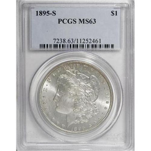 <B>1895-S $1 MS63 PCGS.</B></I> A delicately toned and shimmering example of this challenging San Francisco issue. The strike is good, and mentionable marks are limited to the field above the arrowheads. The U.S. economy entered a depression (then known as a panic) in 1893. Judging by silver dollar mintages, the economy did not recover until 1896.<BR><I>From The Silver Spur Collection of Morgan Dollars.</B></I><BR><BR><B>Coin Engraver:</B> George T. Morgan<BR><BR><b>Shipping:</b> Coins & Currency (<a target="_blank" href="http://www.heritageauctions.com/common/shipping.php">view shipping information</a>)
