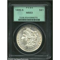 <TR><TD width="100%"><TABLE cellSpacing=1 cellPadding=3 width="100%" border=0><TBODY><TR><TD width="100%" bgColor=#79735c><FONT face=arial color=#ffffff size=3><B>Description</B> </FONT></TD></TR><TR><TD width="100%" bgColor=#ffffff><FONT face=arial size=2><B>1895-S $1 MS63 PCGS.</B></I> A Select example of this popular and conditionally scarce San Francisco issue which, like most Uncirculated '95-S Dollars, probably originated from the LaVere Redfield hoard. This piece is untoned with strong central details and appealing satiny luster. A rather lengthy blemish to the left of the portrait is the primary concern, while the reverse is nearly of Gem status. </FONT></TD></TR></TBODY></TABLE></TD></TR></TBODY></TABLE><BR><A name=PricesRealized></A><TABLE cellSpacing=0 cellPadding=0 width="100%" bgColor=#000000 border=0><TBODY><TR><TD width="100%"><TABLE cellSpacing=1 cellPadding=3 width="100%" border=0><TBODY><TR><TD width="100%" bgColor=#79735c><A name=PR><FONT face=arial color=#ffffff size=3><B>Previous Prices from Heritage Auctions</B> </FONT></A></TD></TR><TR><TD bgColor=#f6f6ed><TABLE cellSpacing=0 cellPadding=0 width="100%" border=1><TBODY><TR><TD align=middle width="33%"><B>Date</B></TD><TD align=middle width="33%"><B>Service</B></TD><TD align=middle width="33%"><B>Price</B></TD></TR><TR bgColor=whitesmoke><TD width="33%"><B>01/11/2003</B></TD><TD width="33%">PCGS</TD><TD width="33%">$3,105.00</TD></TR><TR bgColor=whitesmoke><TD width="33%"><B>03/01/1999</B></TD><TD width="33%">PCGS</TD><TD width="33%">$2,875.00</TD></TR><TR bgColor=whitesmoke><TD width="33%"><B>07/30/2002</B></TD><TD width="33%">PCGS</TD><TD width="33%">$3,105.00</TD></TR><TR bgColor=whitesmoke><TD width="33%"><B>04/27/2002</B></TD><TD width="33%">PCGS</TD><TD width="33%">$3,220.00</TD></TR><TR bgColor=whitesmoke><TD width="33%"><B>10/09/2001</B></TD><TD width="33%">PCGS</TD><TD width="33%">$2,800.00</TD></TR><TR bgColor=whitesmoke><TD width="33%"><B>08/08/2001</B></TD><TD width="33%">PCGS</TD><TD width="33%">$3,565.00</TD></TR><TR bgColor=whitesmoke><TD width="33%"><B>08/07/1998</B></TD><TD width="33%">PCGS</TD><TD width="33%">$3,680.00</TD></TR><TR bgColor=whitesmoke><TD width="33%"><B>03/04/1994</B></TD><TD width="33%">PCGS</TD><TD width="33%">$2,035.00</TD></TR><TR bgColor=whitesmoke><TD width="33%"><B>11/19/1999</B></TD><TD width="33%">PCGS</TD><TD width="33%">$2,645.00</TD></TR><TR bgColor=whitesmoke><TD width="33%"><B>01/08/1999</B></TD><TD width="33%">PCGS</TD><TD width="33%">$3,335.00</TD></TR><TR bgColor=whitesmoke><TD width="33%"><B>07/31/1993</B></TD><TD width="33%">PCGS</TD><TD width="33%">$2,805.00</TD></TR><TR bgColor=whitesmoke><TD width="33%"><B>03/01/2000</B></TD><TD width="33%">PCGS</TD><TD width="33%">$2,645.00</TD></TR><TR bgColor=whitesmoke><TD width="33%"><B>11/01/1999</B></TD><TD width="33%">PCGS</TD><TD width="33%">$2,415.00</TD></TR><TR bgColor=whitesmoke><TD width="33%"><B>07/01/1997</B></TD><TD width="33%">PCGS</TD><TD width="33%">$2,860.00</TD></TR><TR bgColor=whitesmoke><TD width="33%"><B>08/07/1999</B></TD><TD width="33%">NGC</TD><TD width="33%">$3,220.00</TD></TR></TBODY></TABLE></TD></TR><TR><TD bgColor=#ffffff><FONT face=arial size=1 ?>PLEASE NOTE: All prices realized reflect the final hammer price PLUS the buyer's premium in auctions that charge a buyer's premium. Each item has a notation at the top of the listing indicating whether that lot included a buyer's premium. Example: A item that sells with a final hammer price of $100 and a 20% buyer's premium will display with a price realized of $120. All information listed is intended to be as accurate as possible, but errors are possible. Please use this guide carefully and inform us of any inaccuracies. </FONT></TD></TR></TBODY></TABLE></TD></TR></TBODY></TABLE><BR><TABLE cellSpacing=0 cellPadding=0 width="100%" bgColor=#000000 border=0><TBODY><TR><TD width="100%"><TABLE cellSpacing=1 cellPadding=3 width="100%" border=0><TBODY><TR><TD width="100%" bgColor=#79735c colSpan=6><FONT face=arial color=#ffffff size=3><B>Price Guide*</B> </FONT></TD></TR><TR bgColor=#f6f6ed><TD align=middle><B>Grade</B> </TD><TD align=middle><B>Coin World<BR>(Trends)</B> </TD><TD align=middle><B>Numismedia<BR>Retail</B> </TD><TD align=middle><B>Numismedia<BR>Wholesale</B> </TD><TD align=middle><B>Coin<BR>Universe</B> </TD><TD align=middle><B>Heritage<BR>Value Index</B> </TD></TR><TR bgColor=#ffffff><TD align=middle>62</TD><TD align=right>$2,350.00</TD><TD align=right>---</TD><TD align=right>$1,975.00</TD><TD align=right>$2,275.00</TD><TD align=right>$1,806.88</TD></TR><TR style="FONT-WEIGHT: bold" bgColor=#cccfdd><TD align=middle>63</TD><TD align=right>$3,600.00</TD><TD align=right>---</TD><TD align=right>$3,040.00</TD><TD align=right>$3,900.00</TD><TD align=right>$2,662.50</TD></TR><TR bgColor=#ffffff><TD align=middle>64</TD><TD align=right>$5,750.00</TD><TD align=right>---</TD><TD align=right>$4,225.00</TD><TD align=right>$5,500.00</TD><TD align=right>$3,961.25</TD></TR><TR bgColor=#ffffff><TD colSpan=6><FONT size=1>*All information listed is intended to be as accurate as possible, but errors are possible. No item may be returned or refused based on this information which is provided as a service to our customers. You should contact each pricing source directly to determine the accuracy of this information. </FONT></TD></TR></TBODY></TABLE></TD></TR></TBODY></TABLE><BR><TABLE cellSpacing=0 cellPadding=0 width="100%" bgColor=#000000 border=0><TBODY><TR><TD width="100%"><TABLE cellSpacing=1 cellPadding=3 width="100%" border=0><TBODY><TR><TD width="100%" bgColor=#79735c><FONT face=arial color=#ffffff size=3><B>Population Guide</B> </FONT></TD></TR><TR bgColor=#ffffff><TD align=middle><!-- Begin Output of Population Grid--><TABLE cellSpacing=0 cellPadding=0 width="100%" border=0><TBODY><TR><TD vAlign=center><TABLE cellSpacing=0 width="100%" border=1 cellsadding="3"><TBODY><TR><TD vAlign=center><TABLE cellSpacing=0 cellPadding=3 width="100%" border=1><TBODY><TR>