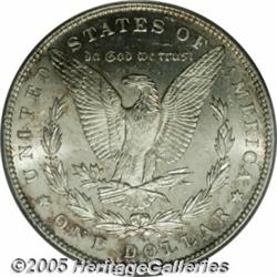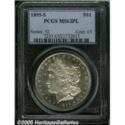 <B>1895-S<img border='0' src='http://www.heritagecoins.com/images/star.gif' width=10 height=10>$1 MS63 Prooflike PCGS.</B></I> Sharply struck with brilliant silver surfaces and faint splashes of iridescent toning. The mirrored fields are lustrous with light cameo contrast. This is a highly attractive and desirable example.