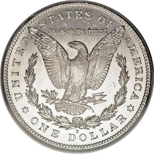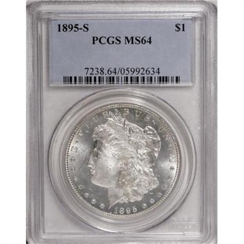 <B>1895-S $1 MS64 PCGS.</B></I> Though this coin's mirrors fall just shy of fully Prooflike reflectivity, the surfaces have incredible flash nonetheless. A boldly impressed representative from this popular low-mintage issue, one of the finest among only 400,000 pieces struck. Amazing visual appeal. PCGS has certified only 28 finer examples (1/08).<BR><I>From The Oxford Collection.</B></I><BR><BR><B>Coin Engraver:</B> George T. Morgan<BR><BR><b>Shipping:</b> Coins & Currency (<a target="_blank" href="http://www.heritageauctions.com/common/shipping.php">view shipping information</a>)