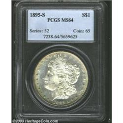 <TR><TD width="100%"><TABLE cellSpacing=1 cellPadding=3 width="100%" border=0><TBODY><TR><TD width="100%" bgColor=#79735c><FONT face=arial color=#ffffff size=3><B>Description</B> </FONT></TD></TR><TR><TD width="100%" bgColor=#ffffff><FONT face=arial size=2><B>1895-S $1 MS64 PCGS.</B></I> The peripheries have freckles of light honey-gold patina. Well struck on the reverse, while the obverse is boldly defined aside from the curl directly above the ear. The reverse is well preserved, has only faint luster grazes consistent with the grade. Among San Francisco Mint issues, only the 1893-S has a lower production. A high attrition rate makes the 1895-S coveted even in heavily circulated condition, and attractive Mint State pieces are under ceaseless demand from specialists. </FONT></TD></TR></TBODY></TABLE></TD></TR></TBODY></TABLE><BR><A name=PricesRealized></A><TABLE cellSpacing=0 cellPadding=0 width="100%" bgColor=#000000 border=0><TBODY><TR><TD width="100%"><TABLE cellSpacing=1 cellPadding=3 width="100%" border=0><TBODY><TR><TD width="100%" bgColor=#79735c><A name=PR><FONT face=arial color=#ffffff size=3><B>Previous Prices from Heritage Auctions</B> </FONT></A></TD></TR><TR><TD bgColor=#f6f6ed><TABLE cellSpacing=0 cellPadding=0 width="100%" border=1><TBODY><TR><TD align=middle width="33%"><B>Date</B></TD><TD align=middle width="33%"><B>Service</B></TD><TD align=middle width="33%"><B>Price</B></TD></TR><TR bgColor=whitesmoke><TD width="33%"><B>03/23/2003</B></TD><TD width="33%">PCGS</TD><TD width="33%">$5,520.00</TD></TR><TR bgColor=whitesmoke><TD width="33%"><B>03/23/2003</B></TD><TD width="33%">PCGS</TD><TD width="33%">$4,830.00</TD></TR><TR bgColor=whitesmoke><TD width="33%"><B>01/11/2003</B></TD><TD width="33%">PCGS</TD><TD width="33%">$4,370.00</TD></TR><TR bgColor=whitesmoke><TD width="33%"><B>09/28/2002</B></TD><TD width="33%">PCGS</TD><TD width="33%">$5,060.00</TD></TR><TR bgColor=whitesmoke><TD width="33%"><B>02/01/2001</B></TD><TD width="33%">PCGS</TD><TD width="33%">$5,175.00</TD></TR><TR bgColor=whitesmoke><TD width="33%"><B>08/09/2000</B></TD><TD width="33%">PCGS</TD><TD width="33%">$3,680.00</TD></TR><TR bgColor=whitesmoke><TD width="33%"><B>08/06/2001</B></TD><TD width="33%">PCGS</TD><TD width="33%">$4,025.00</TD></TR><TR bgColor=whitesmoke><TD width="33%"><B>10/01/2001</B></TD><TD width="33%">PCGS</TD><TD width="33%">$4,312.00</TD></TR><TR bgColor=whitesmoke><TD width="33%"><B>01/12/2002</B></TD><TD width="33%">PCGS</TD><TD width="33%">$4,140.00</TD></TR><TR bgColor=whitesmoke><TD width="33%"><B>11/15/2001</B></TD><TD width="33%">PCGS</TD><TD width="33%">$3,852.50</TD></TR><TR bgColor=whitesmoke><TD width="33%"><B>10/06/2001</B></TD><TD width="33%">PCGS</TD><TD width="33%">$3,565.00</TD></TR><TR bgColor=whitesmoke><TD width="33%"><B>08/08/2001</B></TD><TD width="33%">PCGS</TD><TD width="33%">$3,818.00</TD></TR><TR bgColor=whitesmoke><TD width="33%"><B>01/05/2001</B></TD><TD width="33%">PCGS</TD><TD width="33%">$3,910.00</TD></TR><TR bgColor=whitesmoke><TD width="33%"><B>01/05/2001</B></TD><TD width="33%">PCGS</TD><TD width="33%">$4,025.00</TD></TR><TR bgColor=whitesmoke><TD width="33%"><B>01/05/2001</B></TD><TD width="33%">PCGS</TD><TD width="33%">$3,680.00</TD></TR><TR bgColor=whitesmoke><TD width="33%"><B>01/05/2001</B></TD><TD width="33%">PCGS</TD><TD width="33%">$4,025.00</TD></TR><TR bgColor=whitesmoke><TD width="33%"><B>03/21/1998</B></TD><TD width="33%">PCGS</TD><TD width="33%">$4,025.00</TD></TR><TR bgColor=whitesmoke><TD width="33%"><B>10/10/1999</B></TD><TD width="33%">PCGS</TD><TD width="33%">$3,950.25</TD></TR><TR bgColor=whitesmoke><TD width="33%"><B>06/06/1998</B></TD><TD width="33%">PCGS</TD><TD width="33%">$4,715.00</TD></TR><TR bgColor=whitesmoke><TD width="33%"><B>01/07/2000</B></TD><TD width="33%">PCGS</TD><TD width="33%">$3,910.00</TD></TR><TR bgColor=whitesmoke><TD width="33%"><B>09/13/1997</B></TD><TD width="33%">PCGS</TD><TD width="33%">$4,370.00</TD></TR><TR bgColor=whitesmoke><TD width="33%"><B>01/08/1999</B></TD><TD width="33%">PCGS</TD><TD width="33%">$3,910.00</TD></TR><TR bgColor=whitesmoke><TD width="33%"><B>01/10/1998</B></TD><TD width="33%">PCGS</TD><TD width="33%">$8,941.25</TD></TR><TR bgColor=whitesmoke><TD width="33%"><B>11/18/1999</B></TD><TD width="33%">PCGS</TD><TD width="33%">$3,795.00</TD></TR><TR bgColor=whitesmoke><TD width="33%"><B>11/21/2000</B></TD><TD width="33%">PCGS</TD><TD width="33%">$3,800.00</TD></TR><TR bgColor=whitesmoke><TD width="33%"><B>09/01/1998</B></TD><TD width="33%">PCGS</TD><TD width="33%">$4,830.00</TD></TR><TR bgColor=whitesmoke><TD width="33%"><B>02/01/1999</B></TD><TD width="33%">PCGS</TD><TD width="33%">$4,255.00</TD></TR><TR bgColor=whitesmoke><TD width="33%"><B>02/01/2000</B></TD><TD width="33%">PCGS</TD><TD width="33%">$4,370.00</TD></TR><TR bgColor=whitesmoke><TD width="33%"><B>11/01/1999</B></TD><TD width="33%">PCGS</TD><TD width="33%">$5,775.00</TD></TR><TR bgColor=whitesmoke><TD width="33%"><B>10/01/1998</B></TD><TD width="33%">PCGS</TD><TD width="33%">$10,450.00</TD></TR><TR bgColor=whitesmoke><TD width="33%"><B>01/01/1997</B></TD><TD width="33%">PCGS</TD><TD width="33%">$3,190.00</TD></TR><TR bgColor=whitesmoke><TD width="33%"><B>01/01/1999</B></TD><TD width="33%">PCGS</TD><TD width="33%">$7,762.00</TD></TR><TR bgColor=whitesmoke><TD width="33%"><B>01/01/2000</B></TD><TD width="33%">PCGS</TD><TD width="33%">$5,520.00</TD></TR><TR bgColor=whitesmoke><TD width="33%"><B>01/12/2002</B></TD><TD width="33%">NGC</TD><TD width="33%">$3,450.00</TD></TR><TR bgColor=whitesmoke><TD width="33%"><B>05/31/2001</B></TD><TD width="33%">NGC</TD><TD width="33%">$3,450.00</TD></TR><TR bgColor=whitesmoke><TD width="33%"><B>03/04/1995</B></TD><TD width="33%">NGC</TD><TD width="33%">$3,520.00</TD></TR><TR bgColor=whitesmoke><TD width="33%"><B>08/13/1999</B></TD><TD width="33%">NGC</TD><TD width="33%">$4,255.00</TD></TR><TR bgColor=whitesmoke><TD width="33%"><B>08/17/1996</B></TD><TD width="33%">NGC</TD><TD width="33%">$2,