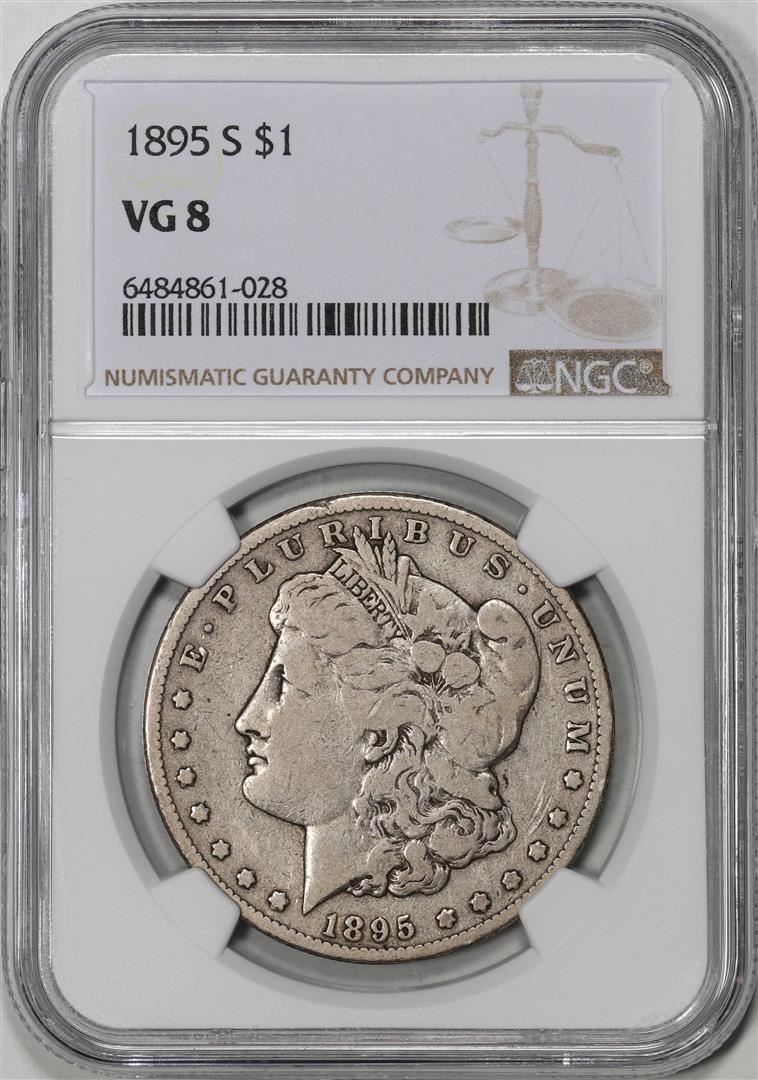 One 1895-S $1 Morgan Silver Dollar Coin NGC VG8. NGC Certified.