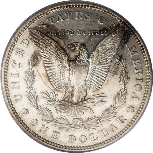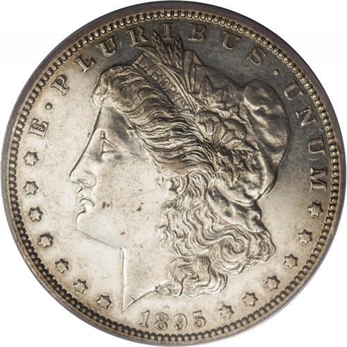 <B>1895<img border='0' src='http://www.heritagecoins.com/images/star.gif' width=10 height=10>$1> PR50 PCGS.</B></I> The 1895 silver dollar needs no real introduction. It has been called on many occasions the "king" of the Morgan dollars and who could really argue? The 12,000 business strikes reportedly struck were most likely among the many millions of silver dollars melted under the provisions of the Pittman Act in 1918. Today, only proofs are known to exist and there were just 880 pieces initially struck for collectors. Occasional hard times and maybe a few oversights sent a reasonable percentage of those into circulation, including this lightly worn specimen. The surfaces are a natural light gray with some splotchy brown color surrounding the eagle on the reverse. If one looks over each side, remnants of the proof surfaces can be found in the fields, and on the devices, despite numerous visible hairlines. An affordable 1895 dollar for the collector wishing to keep the price tag under control. <BR><I>From The Steve Glenn Collection.</B></I> <BR><BR><B>Important notice:</B> Heritage usually auctions material at the rate of 200-250 lots per hour. On some occasions eBay Live bid software or the Internet may not be able to keep up with the pace of the auction. We recommend placing a realistic absentee bid now as insurance to avoid disappointment. Occasionally the auctioneer may eliminate or reject an eBay Live bid, and the auctioneer may also reopen a lot after the close of the eBay live bidding (usually because we missed an audience bid), and may reject your bid even if it shows you as the winning bidder. By bidding via eBay Live, you agree that Heritage may award the lot to another bidder at its sole discretion under the circumstances described above or any other reasonable circumstances. Since eBay bids are not shown to us until we open the lot on the floor, we treat those bids just like floor bids. In most cases the floor responds before the eBay bid is presented to us, due to Internet lag time, so for consistency we have made it a policy that floor bids are always considered first over tie eBay live bids. Also please note that all Heritage lots purchased through eBay Live carry a 20% Buyer's Premium. Please make sure you read the Terms and Conditions before you bid. This lot is being auctioned in conjunction with a live floor auction by Heritage Galleries & Auctioneers. All final auction and invoice information will be supplied by Heritage Galleries & Auctioneers, and all other information should be considered preliminary. Lot:3804 <BR><BR><B>Winning Notification and Billing:</B> After the FINAL session in this auction is complete, Heritage will send e-mail and snail mail invoices. This process normally takes several days. All final auction and invoice information will be supplied by Heritage Galleries & Auctioneers, and all other information should be considered preliminary. <BR><BR>This auction will be conducted on a live auction floor and over the Internet through eBay Live. If you choose to place an absentee bid, please take a moment to <font color='#0000ff'><u><a href='http://pages.ebay.com/liveauctions/help/before/laabsentee.html'>learn how eBay Live absentee bidding works</a></u></font><font color='#000000'>