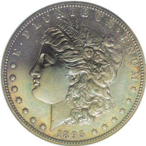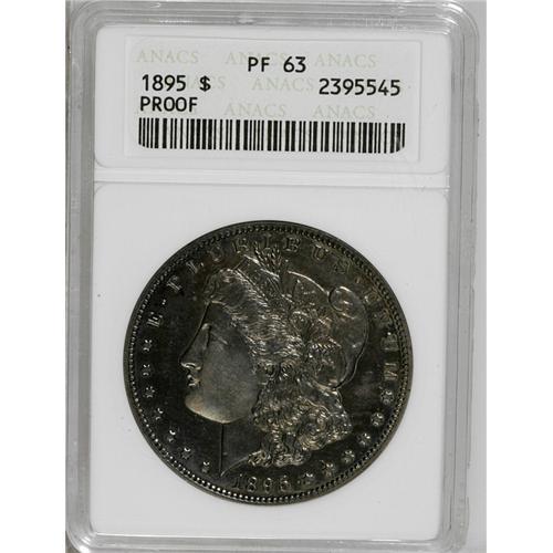 <B>1895<img border='0' src='http://www.heritagecoins.com/images/star.gif' width=10 height=10>$1> PR63 ANACS.</B></I> If not for an aberration in Mint history, the proof Morgan dollars of 1895 would be thought of like those of any other year. The mintage of 880 specimens is not unusual; 972 proofs were minted in 1894, and 762 were minted in 1896. The business strikes of the year (or rather, the lack thereof) make this issue what it is: the undisputed key to the series.<BR> Among the most recent researchers to tackle the 1895 Morgan dollar is Roger W. Burdette, whose <I>Philly 1895 Morgan dollars</B></I> appears in the July 3, 2006 <I>Coin Values</B></I> supplement to <I>Coin World.</B></I> Burdette notes that the Philadelphia "proof" dies could have been used to make business strikes, and he rejects previous theories that the 12,000 business strikes represented dollars dated 1894: "There is no documentation to support asserting the pieces were actually struck coins dated 1894 except for one year-end annotation."<BR> Q. David Bowers, in 2004's <I>The Official Red Book of Morgan Silver Dollars,</B></I> claims that "...the dollar was represented by a single Proof" when the Assay Commission met. Burdette, however, cites the Assay Commission records for 1896 and claims that six business strikes and four proofs went to the Commission. Two coins were melted, leaving four proofs intact...and four business strikes. Burdette concludes that 12,000 business strikes dated 1895 were struck, but never left the Mint and were later melted under the Pittman Act. The only hope for a business strike to survive, then, would be as one of the four assay pieces. To be recognized as a business strike, the coin would have to be sufficiently well-preserved as to show a difference in luster, and a coin kept as a pocket piece, for example, could easily wear down to Very Fine or below. Indeed, NGC has certified four 1895 Morgan dollars as impaired proofs in Very Fine; could one have been a business strike? Ther