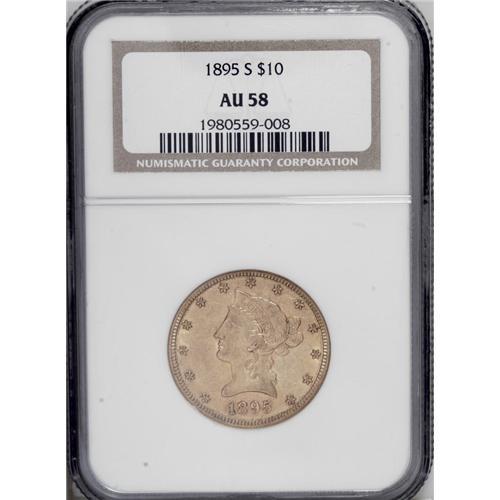 1895-S $10 AU58 NGC. A small amount of highpoint frict
