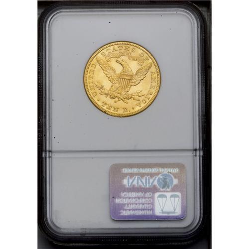 <B>1895-S<$10> AU58 NGC.</B></I> Of the mere 49,000 pieces struck, few survive in this exceptional state of preservation, as is evidenced by the existing population. In all probability, this example in the top 100 pieces extant. Sharply struck and lustrous. Census: 35 in 58, 10 finer (3/06).<BR><I>From The Steve Glenn Collection.</B></I> <BR><BR><B>Important notice:</B> Heritage usually auctions material at the rate of 200-250 lots per hour. On some occasions eBay Live bid software or the Internet may not be able to keep up with the pace of the auction. We recommend placing a realistic absentee bid now as insurance to avoid disappointment. Occasionally the auctioneer may eliminate or reject an eBay Live bid, and the auctioneer may also reopen a lot after the close of the eBay live bidding (usually because we missed an audience bid), and may reject your bid even if it shows you as the winning bidder. By bidding via eBay Live, you agree that Heritage may award the lot to another bidder at its sole discretion under the circumstances described above or any other reasonable circumstances. Since eBay bids are not shown to us until we open the lot on the floor, we treat those bids just like floor bids. In most cases the floor responds before the eBay bid is presented to us, due to Internet lag time, so for consistency we have made it a policy that floor bids are always considered first over tie eBay live bids. Also please note that all Heritage lots purchased through eBay Live carry a 20% Buyer's Premium. Please make sure you read the Terms and Conditions before you bid. This lot is being auctioned in conjunction with a live floor auction by Heritage Galleries & Auctioneers. All final auction and invoice information will be supplied by Heritage Galleries & Auctioneers, and all other information should be considered preliminary. Lot:4056 <BR><BR><B>Winning Notification and Billing:</B> After the FINAL session in this auction is complete, Heritage will send e-mail and snail mail invoices. This process normally takes several days. All final auction and invoice information will be supplied by Heritage Galleries & Auctioneers, and all other information should be considered preliminary. <BR><BR>This auction will be conducted on a live auction floor and over the Internet through eBay Live. If you choose to place an absentee bid, please take a moment to <font color='#0000ff'><u><a href='http://pages.ebay.com/liveauctions/help/before/laabsentee.html'>learn how eBay Live absentee bidding works</a></u></font><font color='#000000'>