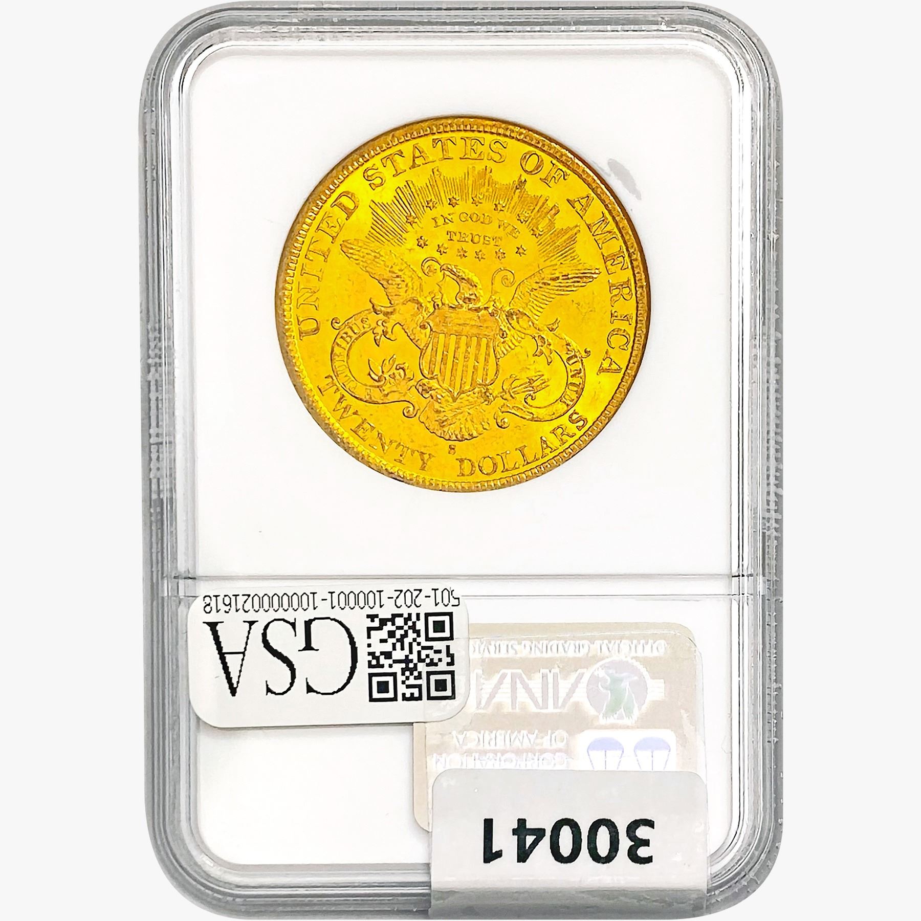 COINS AND CURRENCY LISTED IN GSA’S CATALOG AS GRADED AND ENCAPSULATED BY PCGS, NGC, ANACS, ICG, PCGS CURRENCY, PMG, PCGS BANKNOTE GRADING, CMC OR ANY OTHER THIRD-PARTY GRADING SERVICE ARE LIKEWISE SOLD “AS-IS” EXCEPT AS EXPRESSLY SET FORTH HEREIN. ALL THIRD-PARTY GRADING SERVICE GUARANTEES, INCLUDING AUTHENTICITY, ARE THE SOLE RESPONSIBILITY OF THE THIRD-PARTY GRADING SERVICE AND NOT WARRANTIES OR GUARANTEES OF GSA. BIDDERS SHOULD CONTACT THESE THIRD-PARTY GRADING SERVICES DIRECTLY WITH RESPECT TO ANY CLAIMS OR QUESTIONS THEY MAY HAVE CONCERNING THEIR GUARANTEES AND WARRANTIES. BIDDERS ACKNOWLEDGE AND AGREE THAT AUCTIONEER IS NOT BOUND BY OR LIABLE FOR ANY OPINION OR CERTIFICATION BY ANY THIRD-PARTY GRADING SERVICE. REMOVAL OF A PRODUCT FROM ITS PROTECTIVE CASING OR HOLDER OR ALTERATION OF ANY COIN HOLDER WAIVES ALL RIGHTS CONCERNING THE PRODUCT CONTAINED THEREIN.