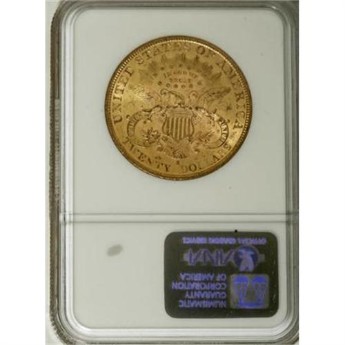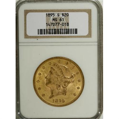 <B>1895-S $20 MS61 NGC.</B></I> NGC Census: (1882/2266). PCGS Population (944/2291). Mintage: 1,100,000. Numismedia Wsl. Price for NGC/PCGS coin in MS61: $890. (#9028)<BR><BR><B>Coin Engraver:</B> James B. Longacre<BR><BR><b>Shipping:</b> Coins & Currency (<a target="_blank" href="http://www.heritageauctions.com/common/shipping.php">view shipping information</a>)