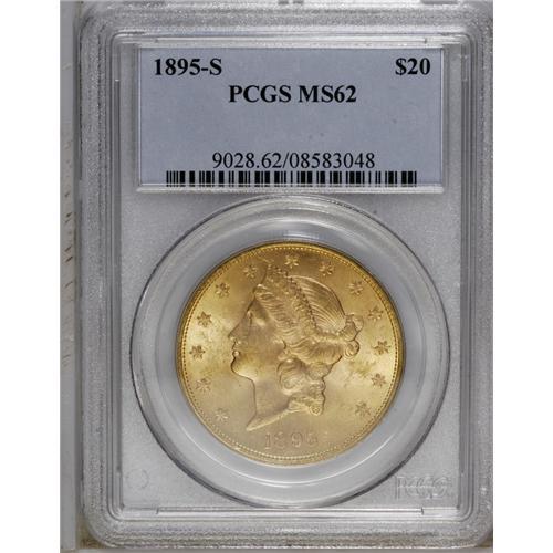 1895-S $20 MS62 PCGS. A solidly struck example that is