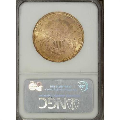 <B>1895-S $20 MS63 NGC.</B></I> Pleasingly detailed with elements of orange that invigorate the shining yellow-gold surfaces. Slightly hazy with a number of faint abrasions that account for the grade.<BR><BR><B>Coin Engraver:</B> James B. Longacre<BR><BR><b>Shipping:</b> Coins & Currency (<a target="_blank" href="http://www.heritageauctions.com/common/shipping.php">view shipping information</a>)