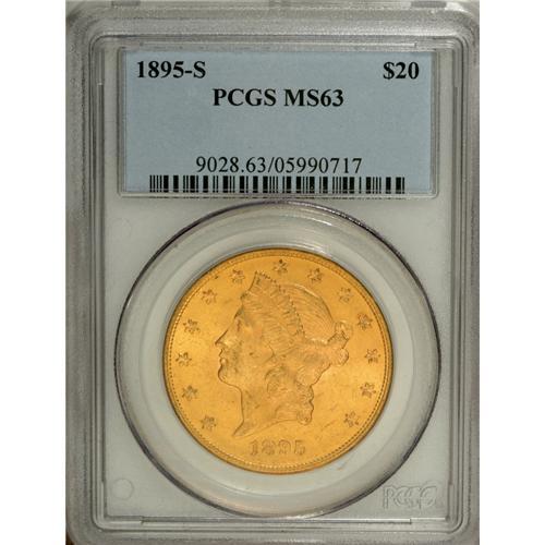 1895-S $20 MS63 PCGS. A lustrous, deep golden example