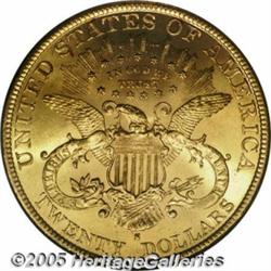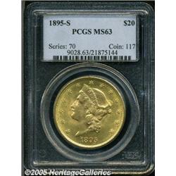 <B>1895-S $20 MS63 PCGS.</B></I> Although the surfaces have light abrasions and other tiny imperfections, this is a lovely example with fully brilliant and frosty yellow-gold luster.