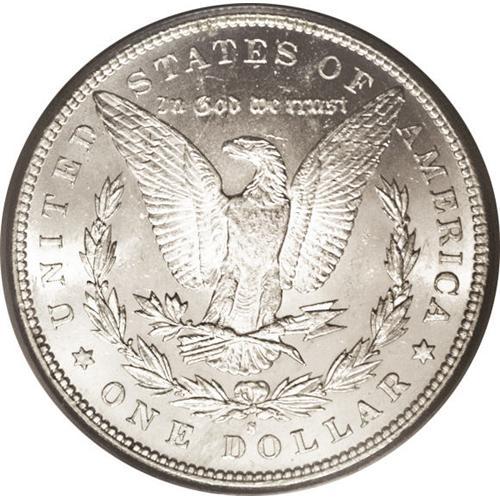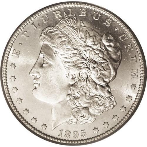 <B>1895-S<img border='0' src='http://www.heritagecoins.com/images/star.gif' width=10 height=10>$1> MS64 PCGS.</B></I> A near-Gem with reflective luster, though the reflectivity is not sufficiently consistent for a prooflike designation. Sharply struck for this issue with light frost on the devices and pale ice-blue toning at the periphery. Conditionally difficult, with only 25 coins certified finer by PCGS (7/06).