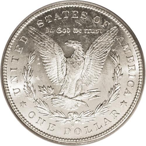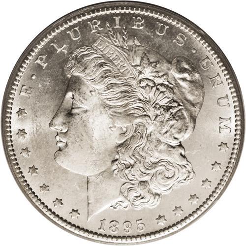 <B>1895-S<img border='0' src='http://www.heritagecoins.com/images/star.gif' width=10 height=10>$1> MS64 PCGS.</B></I> This is a lustrous and minimally bagmarked example, and as such it is quite elusive. Most 1895-S dollars suffer from extensive bagmarking. This specimen offers bold cartwheel luster, with a few abrasions that are consistent with the near-Gem grade assessment. The strike is bold, as is usually seen on this issue. PCGS has graded only 25 pieces finer (9/06).<BR><I>From The Tide Collection.</B></I>