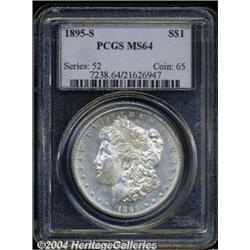 <B>1895-S<S$1> MS64 PCGS.</B></I> Quite an attractive example of this conditionally scarce S-mint issue, from a drastically reduced mintage of 400,000 coins. The surfaces are essentially brilliant, with slight milkiness in the fields, and struck with an exactness not often seen on a '95-S. Minor scuffiness is noted on Liberty's cheek and neck, and a moderate abrasion rests on the eagle's breast. Very suitable as a near-Gem, but unlikely to upgrade to the MS65 level.<BR><I>From The Willamette Collection.</B></I> <BR><BR><B>Important notice:</B> Heritage usually auctions material at the rate of 200-250 lots per hour. On some occasions eBay Live bid software or the Internet may not be able to keep up with the pace of the auction. We recommend placing a realistic absentee bid now as insurance to avoid disappointment. Occasionally the auctioneer may eliminate or reject an eBay Live bid, and the auctioneer may also reopen a lot after the close of the eBay live bidding (usually because we missed an audience bid), and may reject your bid even if it shows you as the winning bidder. By bidding via eBay Live, you agree that Heritage may award the lot to another bidder at its sole discretion under the circumstances described above or any other reasonable circumstances. Since eBay bids are not shown to us until we open the lot on the floor, we treat those bids just like floor bids. In most cases the floor responds before the eBay bid is presented to us, due to Internet lag time, so for consistency we have made it a policy that floor bids are always considered first over tie eBay live bids. Also please note that all Heritage lots purchased through eBay Live carry a 20% Buyer's Premium. Please make sure you read the Terms and Conditions before you bid. </span></font></tr></table></td></tr></table>