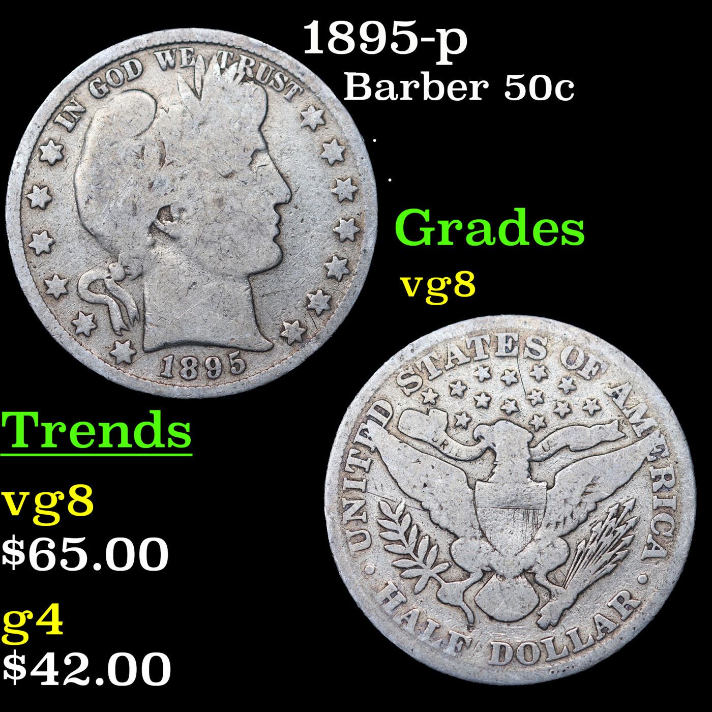 1895-p Barber Half Dollars 50c Grades vg, very good.