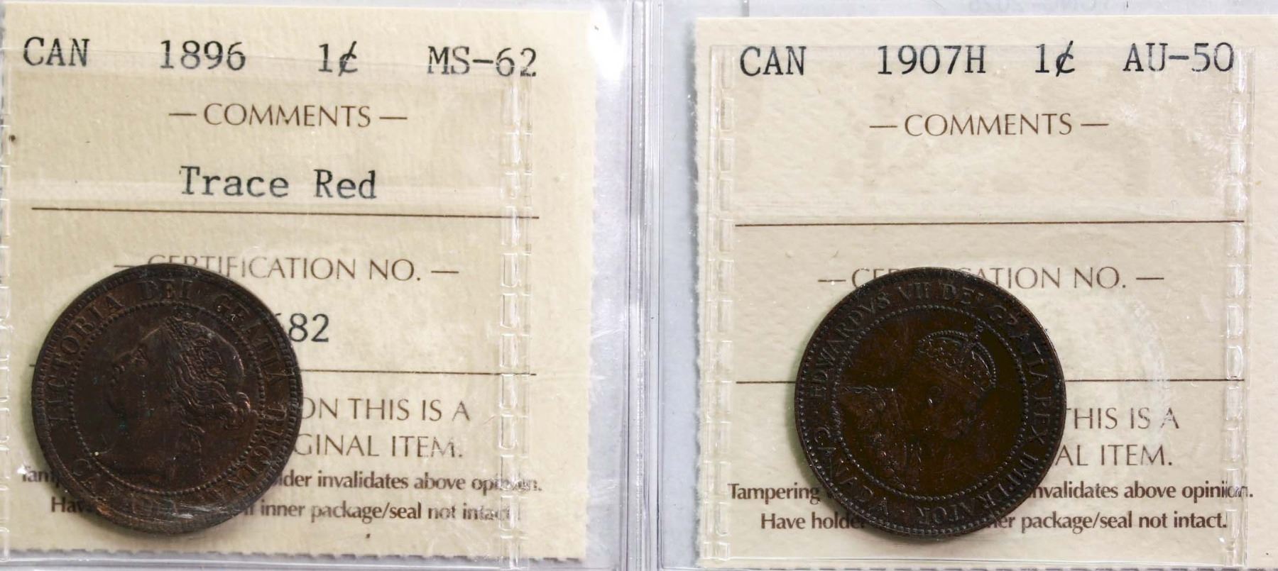 The cataloguer has taken every reasonable measure to ensure that all of the lots in this sale are as described and genuine. All raw coins and banknotes have been graded by the cataloger or the auction house which represent our best professional opinion. To grade coins and banknotes, we use Canadian grading standards, 42 years of experience and good conscience. However, grading is a subjective description in the opinion of the cataloger or the auction house. Among experts there are often differences of opinion on the grading and the eye appeal of a coin. The strike and the state of preservation are often debated. The Canadian Numismatic Company acts as an agent between consignors and buyers. The Canadian Numismatic Company does not guarantee that any coin or banknote cataloged will meet the standards, or the grade, of any third party grading companies. No warranty, whether impressed or implied. Items are as is, no warranty given. We cannot accept responsibility and waive all liability resulting in financial losses, and or incidentals accruing from the sale of any items, nor can we guarantee that items graded by third party services will grade the same if submitted to a different grading service or re-submitted to the same company. Statements by The Canadian Numismatic Company regarding the condition, the eye appeal, the strike and the population of items are for guidance only. All lots offered are sold "AS IS". Title to all lots remains with the auction house until paid for in full by the purchaser. But they are held at the risk of the purchaser once the time of the sale.