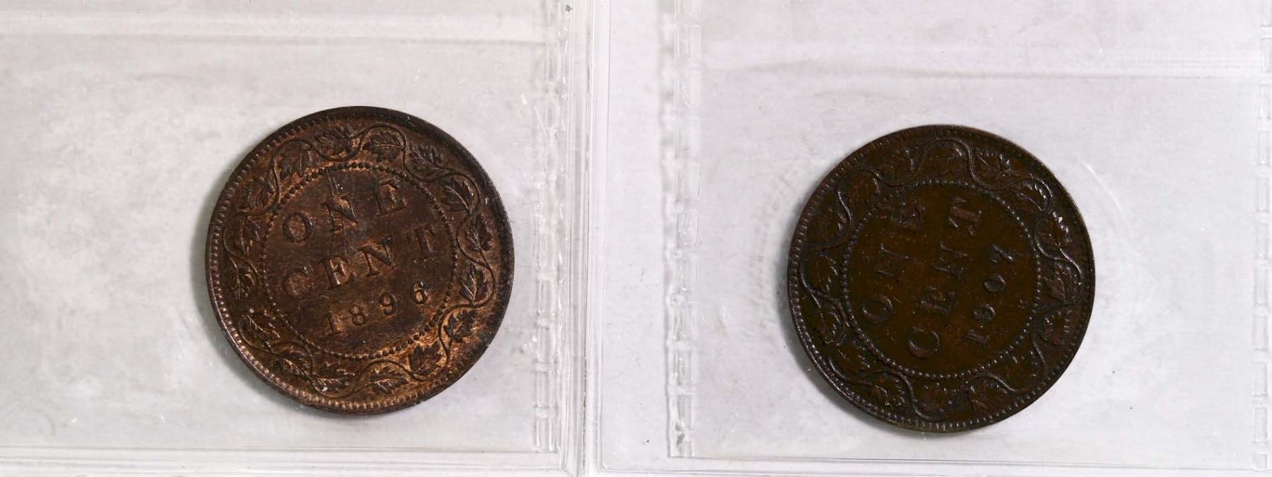 1896 1¢ Choice Mint State-62 Trace Red & 1907H About Uncirculated-50. Lot of 2 coins.