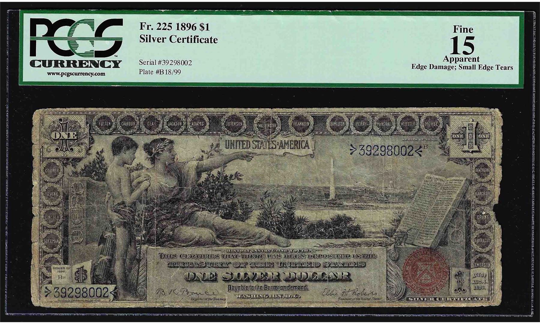1896 $1 Educational Silver Certificate Note Fr.225 PCGS Fine 15 Apparent