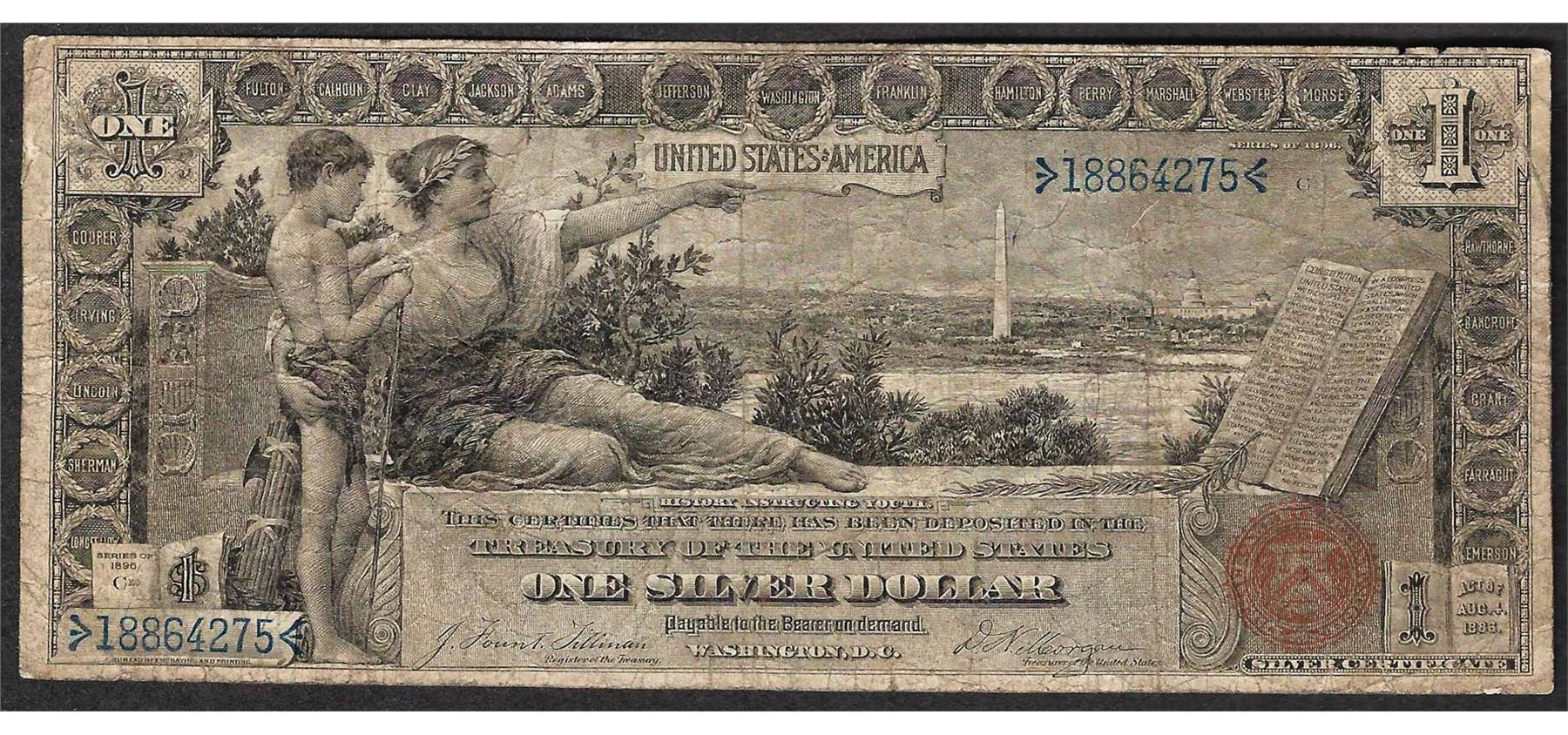 One 1896 $1 Educational Silver Certificate Note.