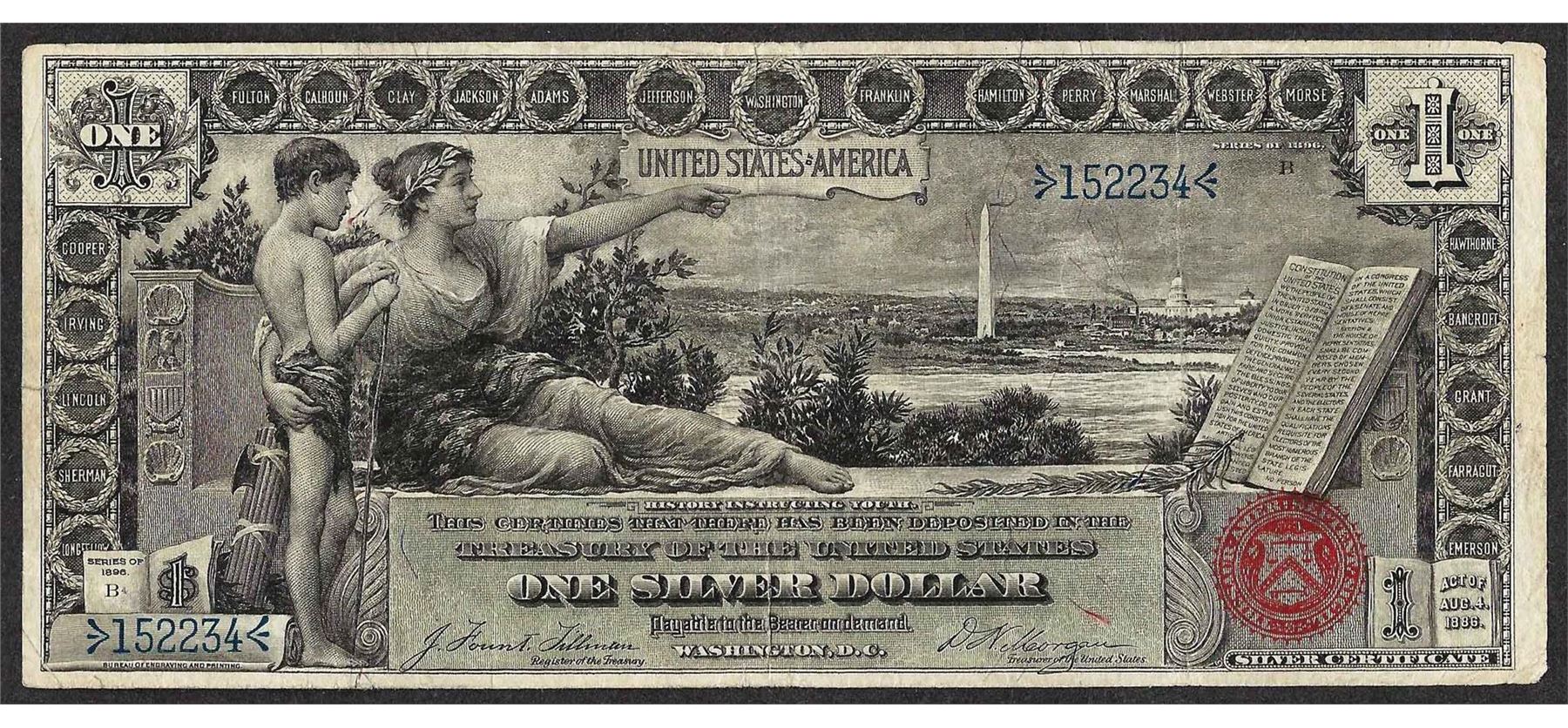 One 1896 $1 Educational Silver Certificate Note.