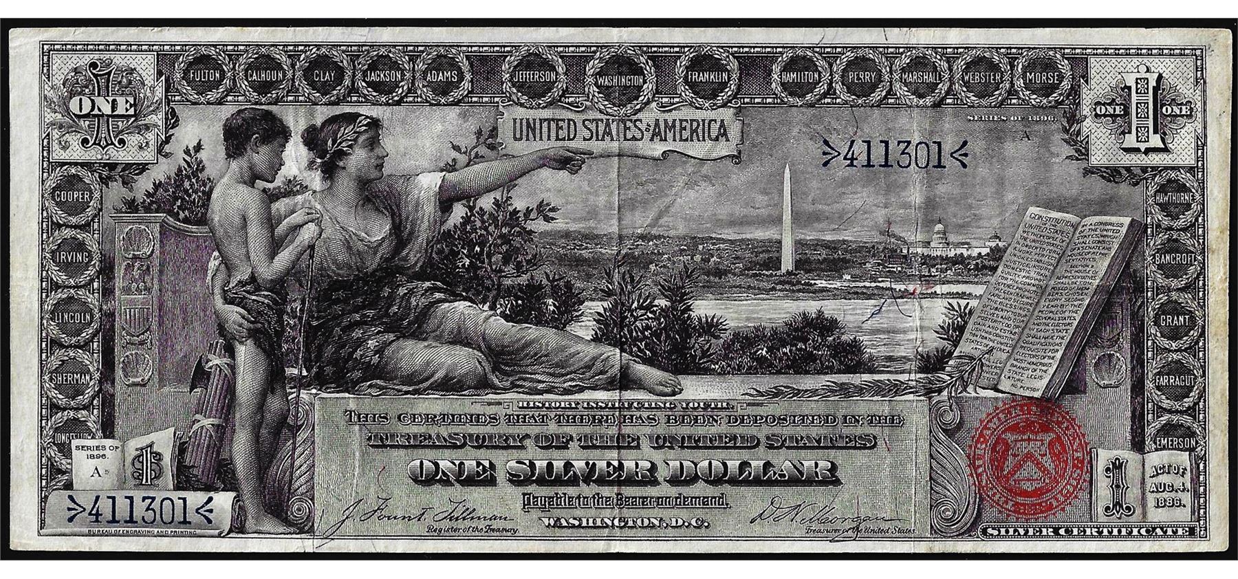 One 1896 $1 Educational Silver Certificate Note.