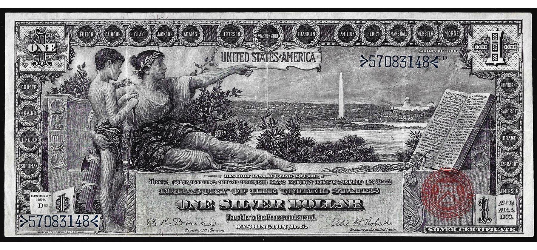 One 1896 $1 Educational Silver Certificate Note.