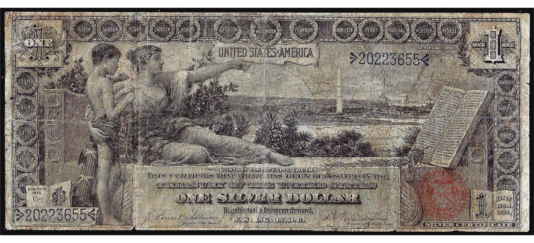 One 1896 $1 Educational Silver Certificate Note.