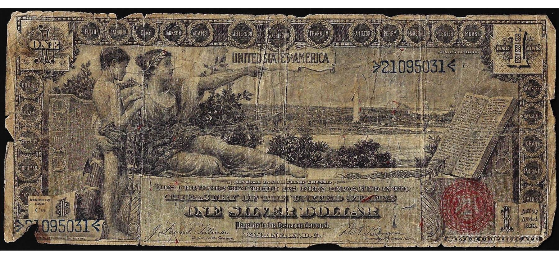 One 1896 $1 Educational Silver Certificate Note.