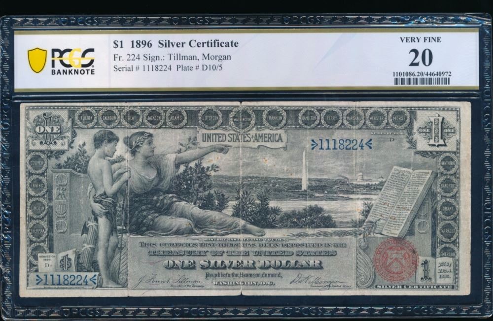 One 1896 $1 Educational Silver Certificate PCGS 20.