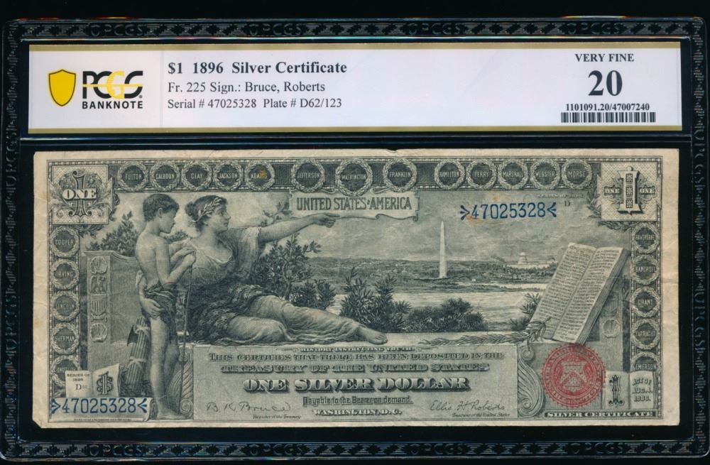 One 1896 $1 Educational Silver Certificate PCGS 20.