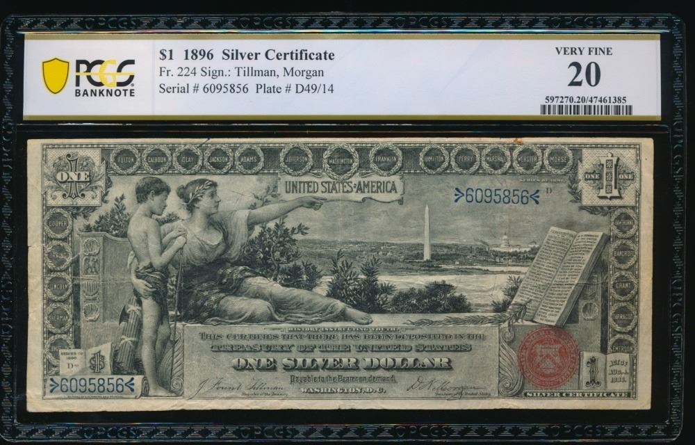 One 1896 $1 Educational Silver Certificate PCGS 20.
