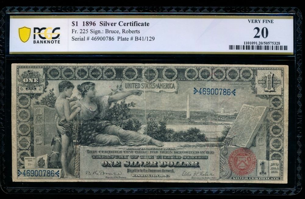 One 1896 $1 Educational Silver Certificate PCGS 20.
