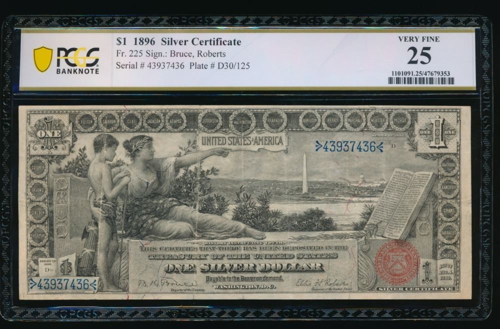 One 1896 $1 Educational Silver Certificate PCGS 25.
