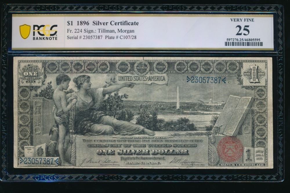 One 1896 $1 Educational Silver Certificate PCGS 25.