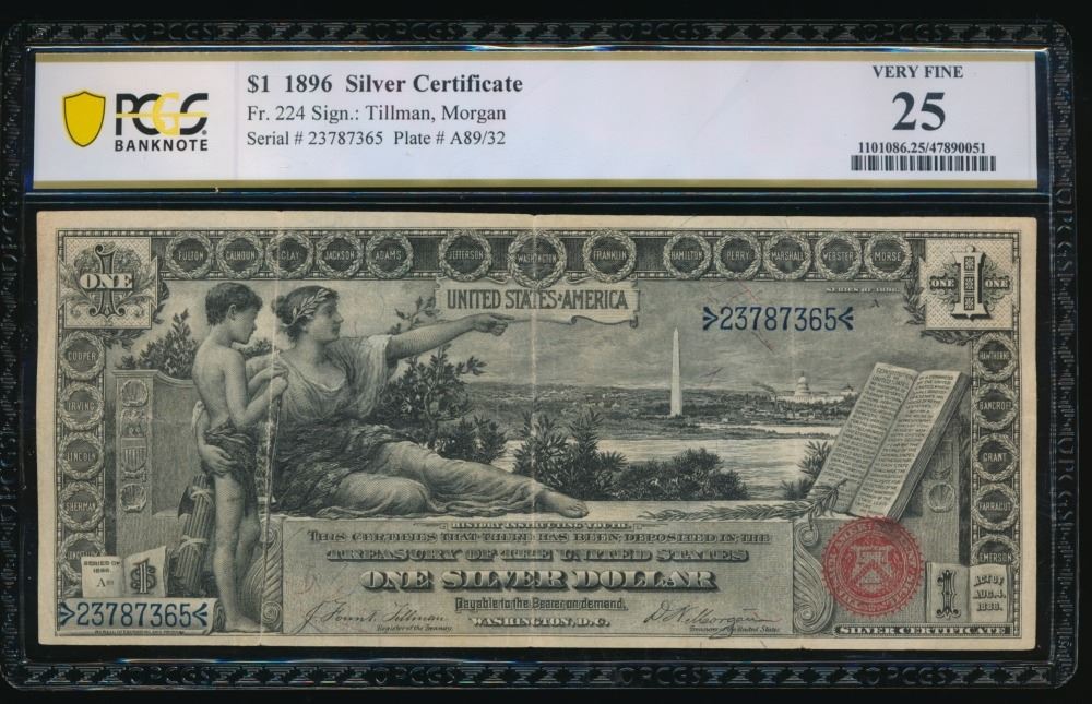 One 1896 $1 Educational Silver Certificate PCGS 25.
