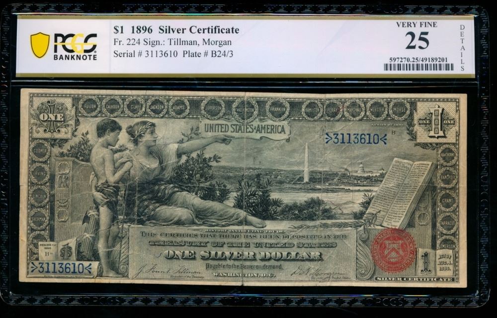 One 1896 $1 Educational Silver Certificate PCGS 25.