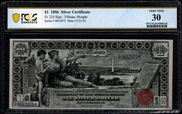 One 1896 $1 Educational Silver Certificate PCGS 30.