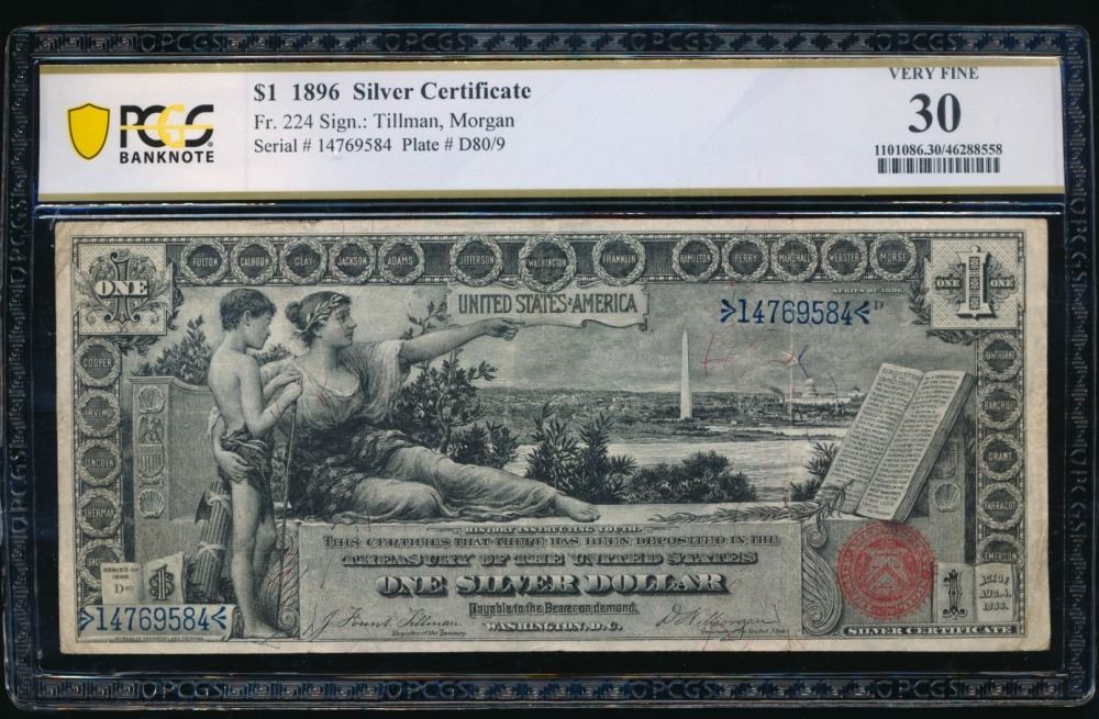 One 1896 $1 Educational Silver Certificate PCGS 30.