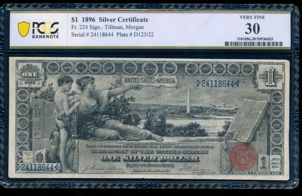 One 1896 $1 Educational Silver Certificate PCGS 30.