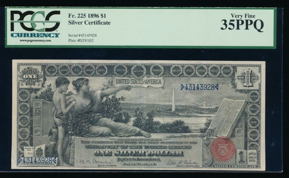 One 1896 $1 Educational Silver Certificate PCGS 35PPQ.
