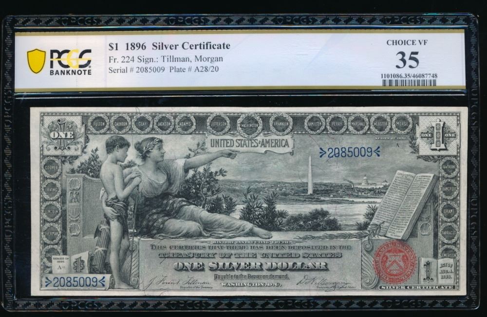 One 1896 $1 Educational Silver Certificate PCGS 35.